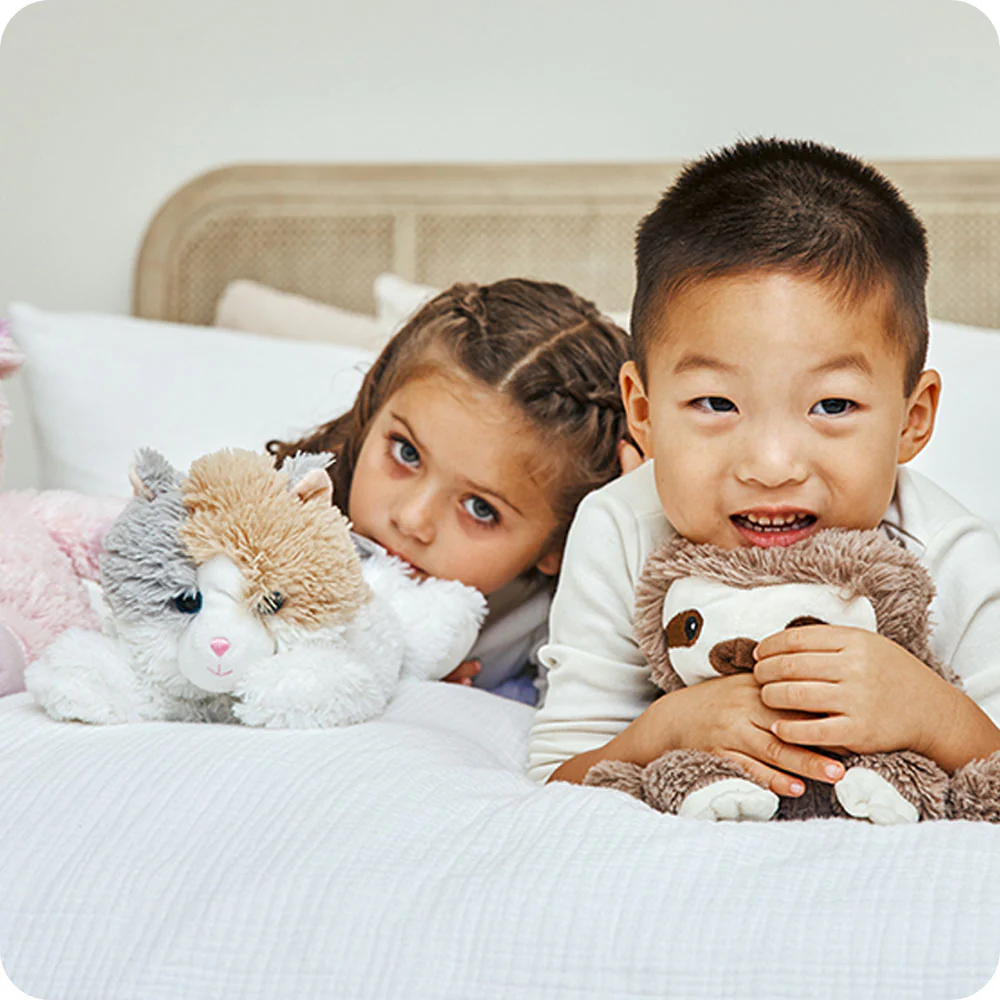 Curl up with Calico Cat Warmies, your ultimate napping buddy. This soft, belly-down cat warms in the microwave for soothing relief, carries the calming scent of lavender and is gently weighted to ease stress.